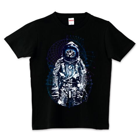 クールな眼差しが銀河を彩る宇宙ねこTシャツです。
